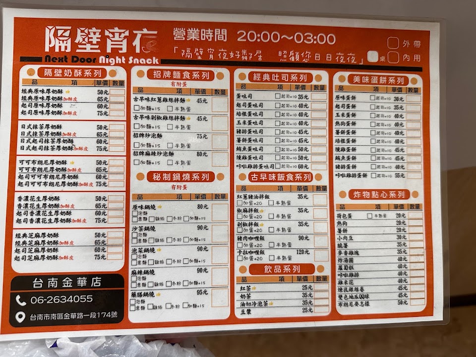 2024最新在地推薦餐廳的菜單_隔壁宵夜-金華店的菜單、圖片