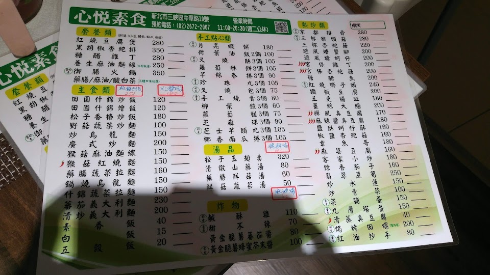 2024最新在地推薦餐廳的菜單_心悅素食的菜單、圖片