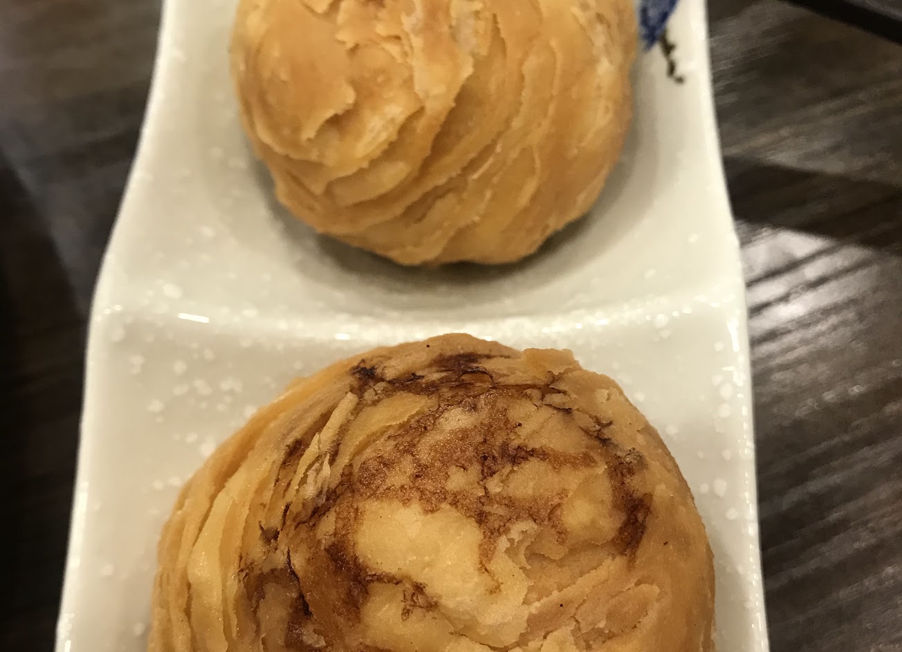 酸辣湯辣度很夠但有點油,可是裡面的料很多,有豆腐/筍子/金針菇/紅蘿蔔/木耳,蘿蔔糕算普通,旁邊有醬料可以自己加,芋泥球趁熱吃才能牽絲很扎實,叉燒包裡面像是有三層的那個東坡素肉,吃起來甜鹹的,不錯的開胃小點心