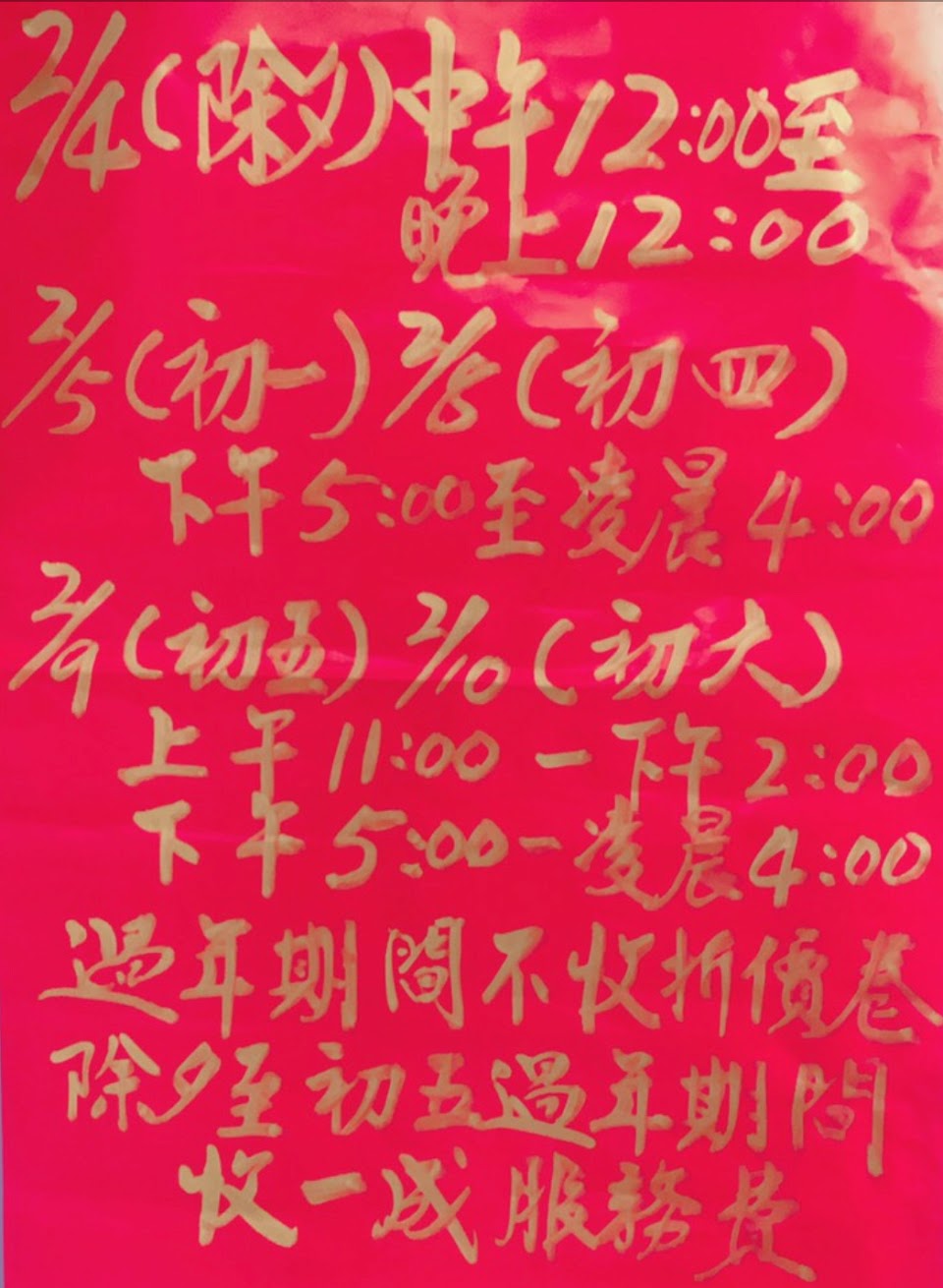 3.結帳才告知春節要加收一成服務費(結帳單上沒寫)