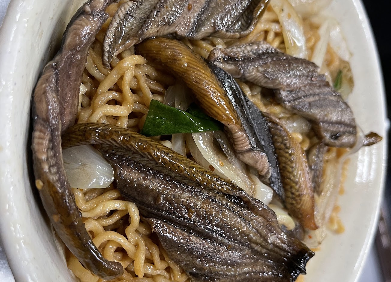 單單乾炒鱔魚 花枝 Q彈 好吃 加上意麵 有點飽