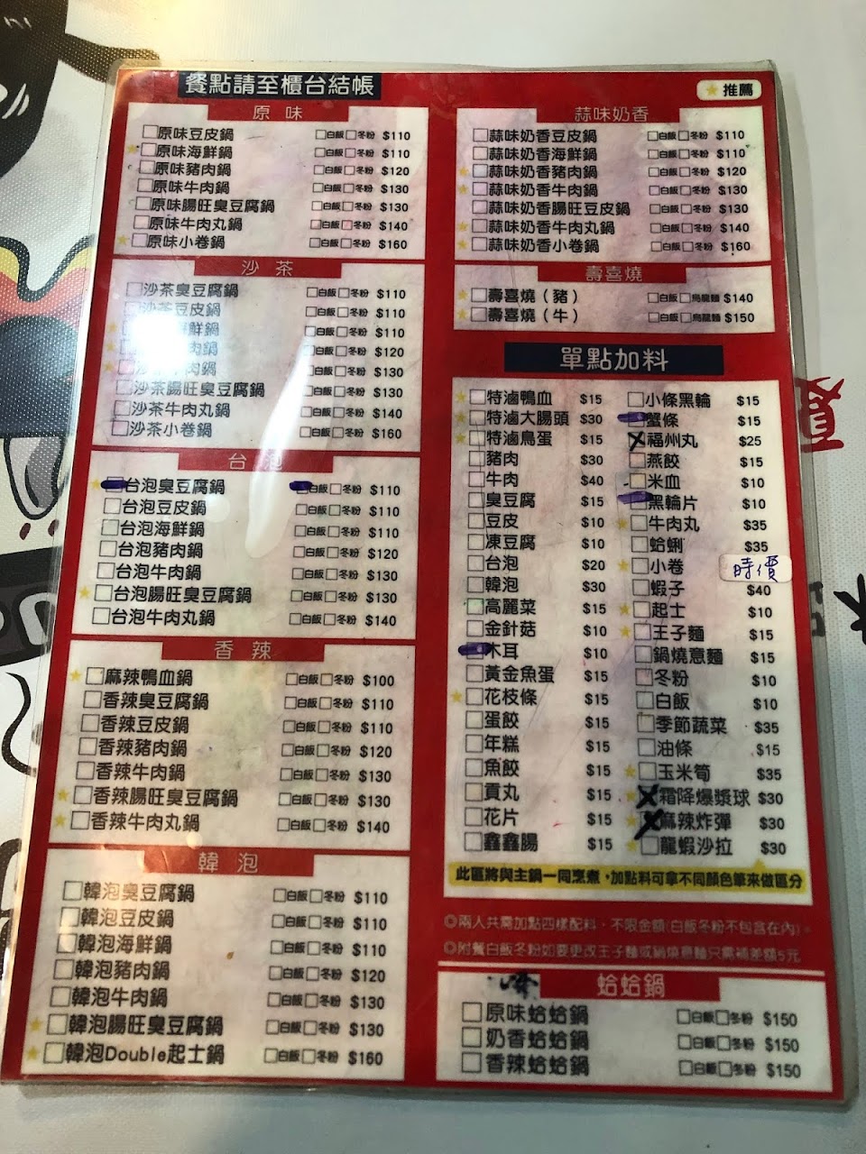 泡菜鍋味道濃鬱,蠻好吃的,加價的東西也蠻便宜的,cp質不錯