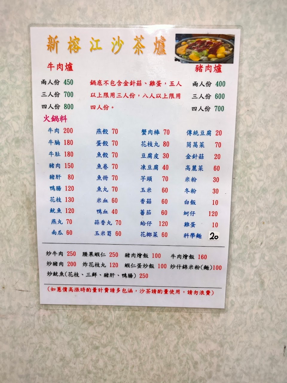 2024最新在地推薦餐廳的菜單_新榕江沙茶爐的菜單、圖片