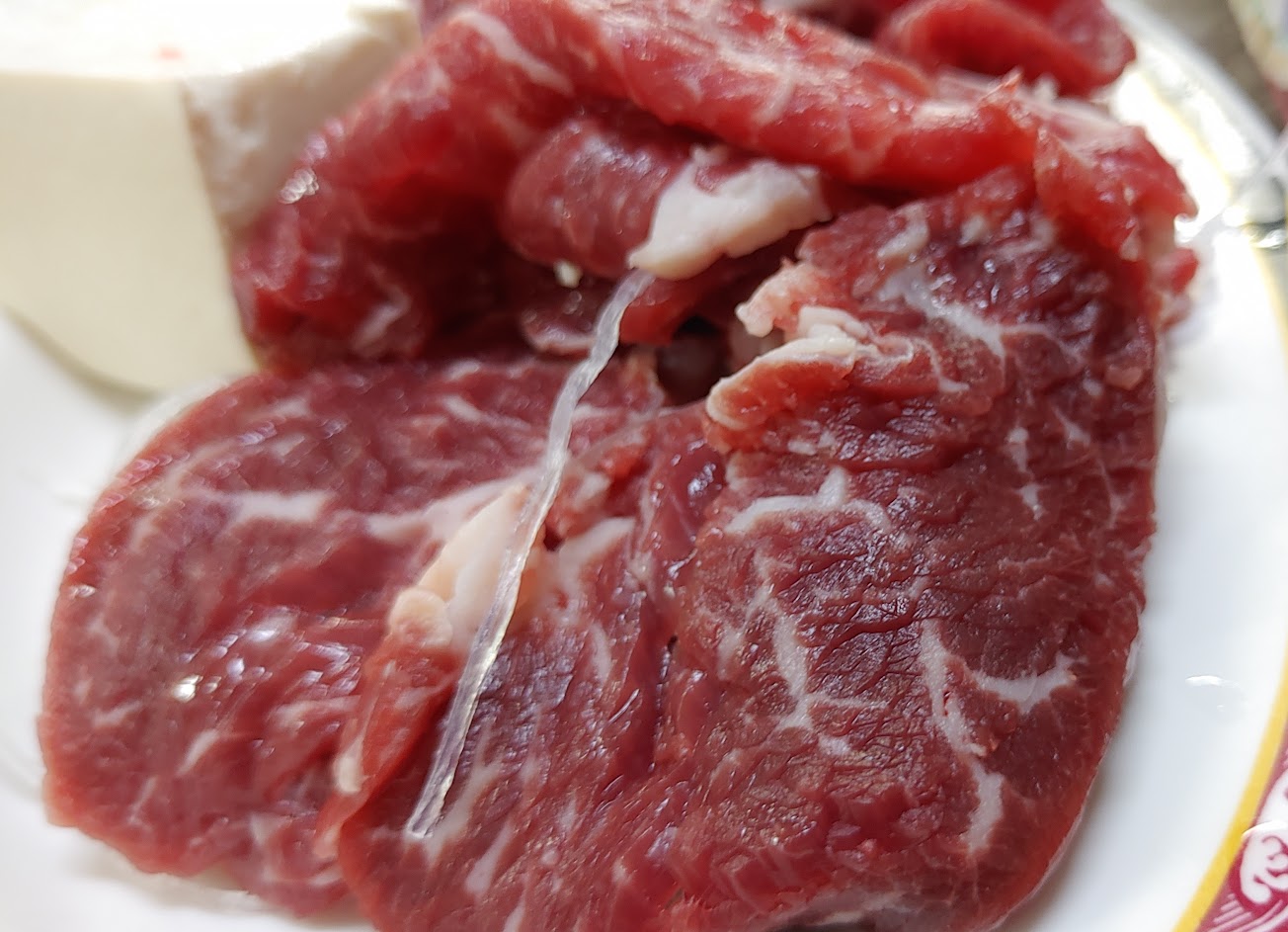 肉切得比較一般涮涮鍋厚,第一次的肉比較漂亮,再追加一盤,就比較不漂亮,品質不一。