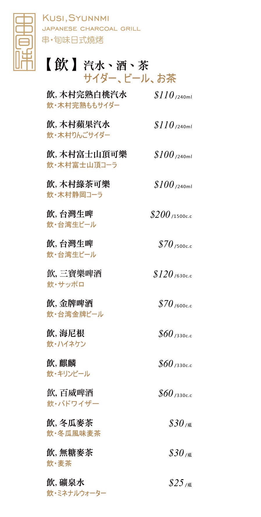 推薦:鹽烤羊小排、味噌燒肉、醬燒鰻井、鹽烤花枝、醬燒雞肉丸。