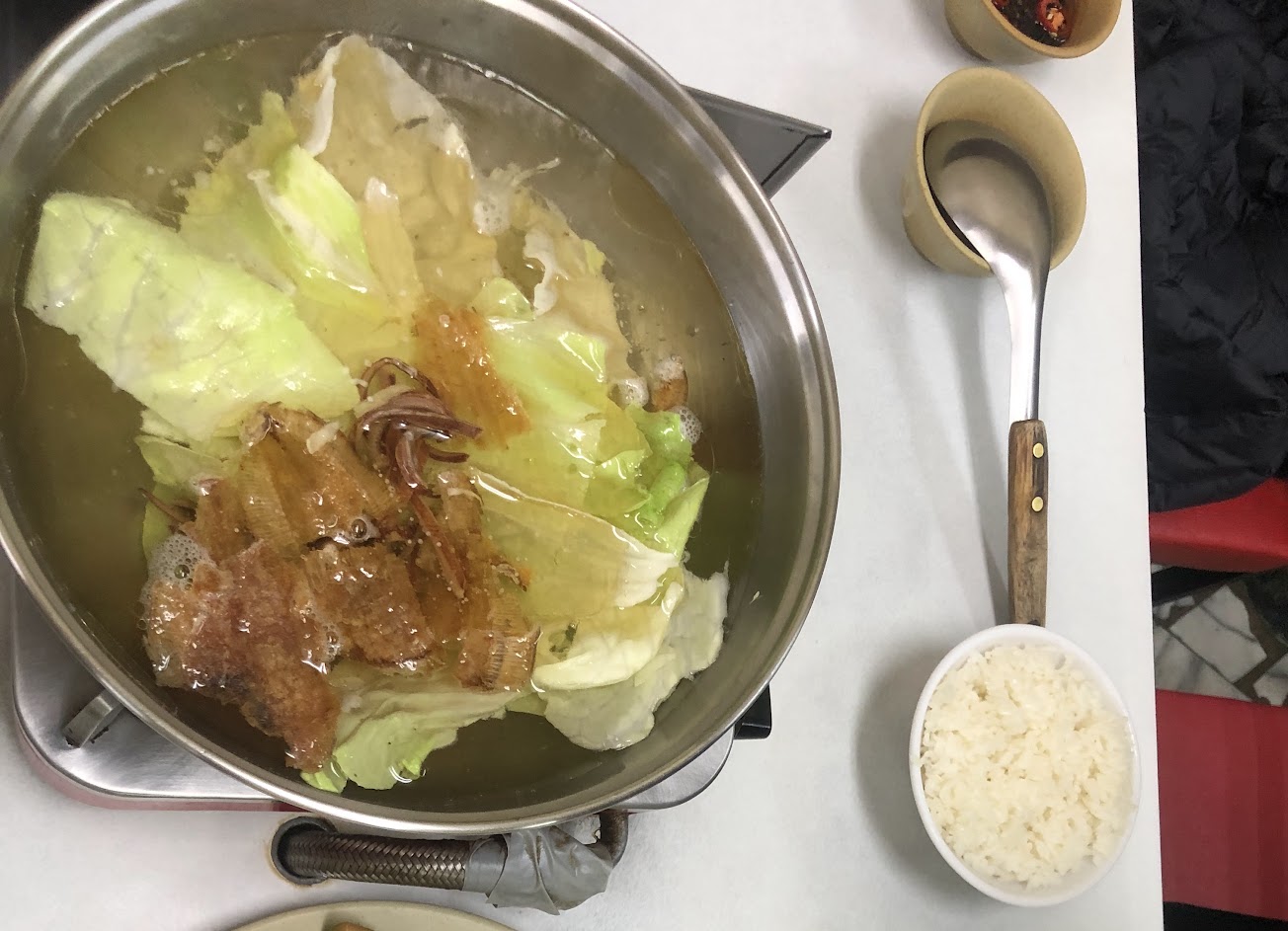 我都叫它古早味火鍋,有扁魚和魷魚的鮮和青菜的甜,食材多元,吃在多次都不膩的好味道。