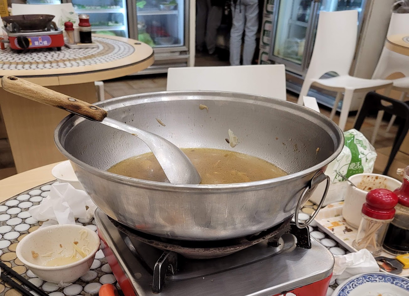 第一次加湯不用錢,第二次後加一次50元,可以理解老闆熬湯頭需要成本,但湯根本沒加滿阿,剛上鍋含肉大概就六分滿,然後後來要煮菜請老闆加第一次湯結果連菜都淹不過(他拿來的湯大概只有他空鍋子1/3),大家傻眼說加這麼少怎麼煮菜(見下圖),結果她回 那你們就再加湯阿50元! 整個吃飯情緒都被滅了,收錢可以,但這種方式也太誇張了吧,我到底是在吃乾鍋還是薑母鴨!
