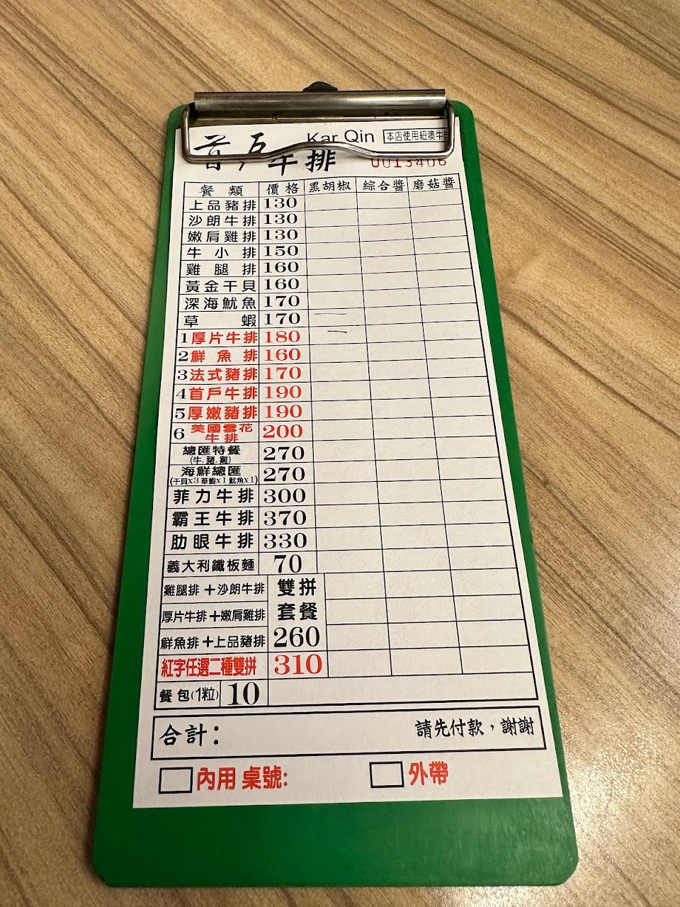 一靠近,就有阿姨看到了,大聲招呼了,拿完點菜單,自己選座位,寫上桌號,點餐付款。