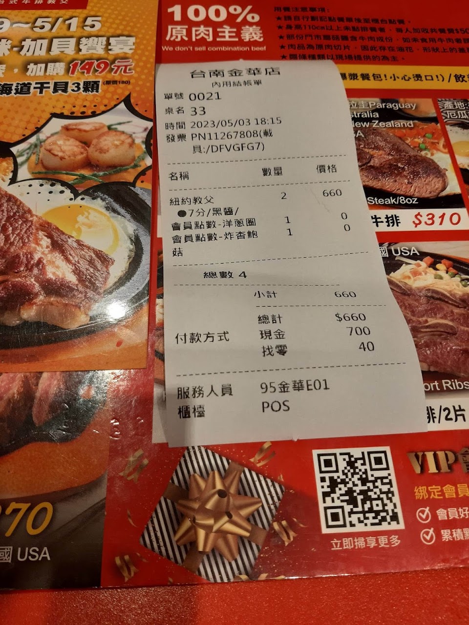 想說提醒一下服務生,冷氣是不是沒開有點熱,那女的回我有開⋯好吧那就流汗吃完這熱騰騰的排餐吧。