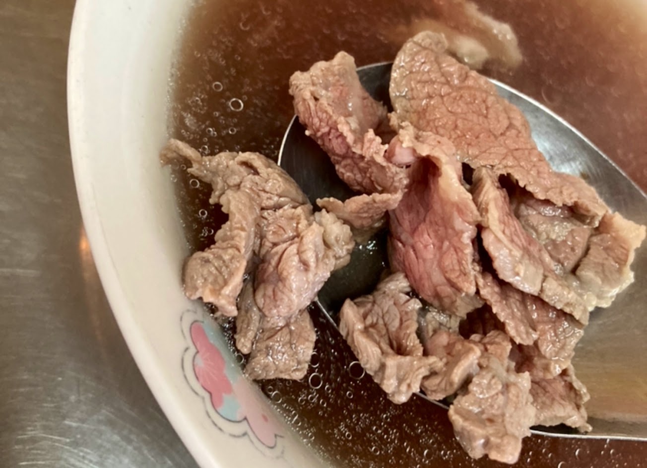 牛肉湯湯頭偏淡口味,喝起來微甜。