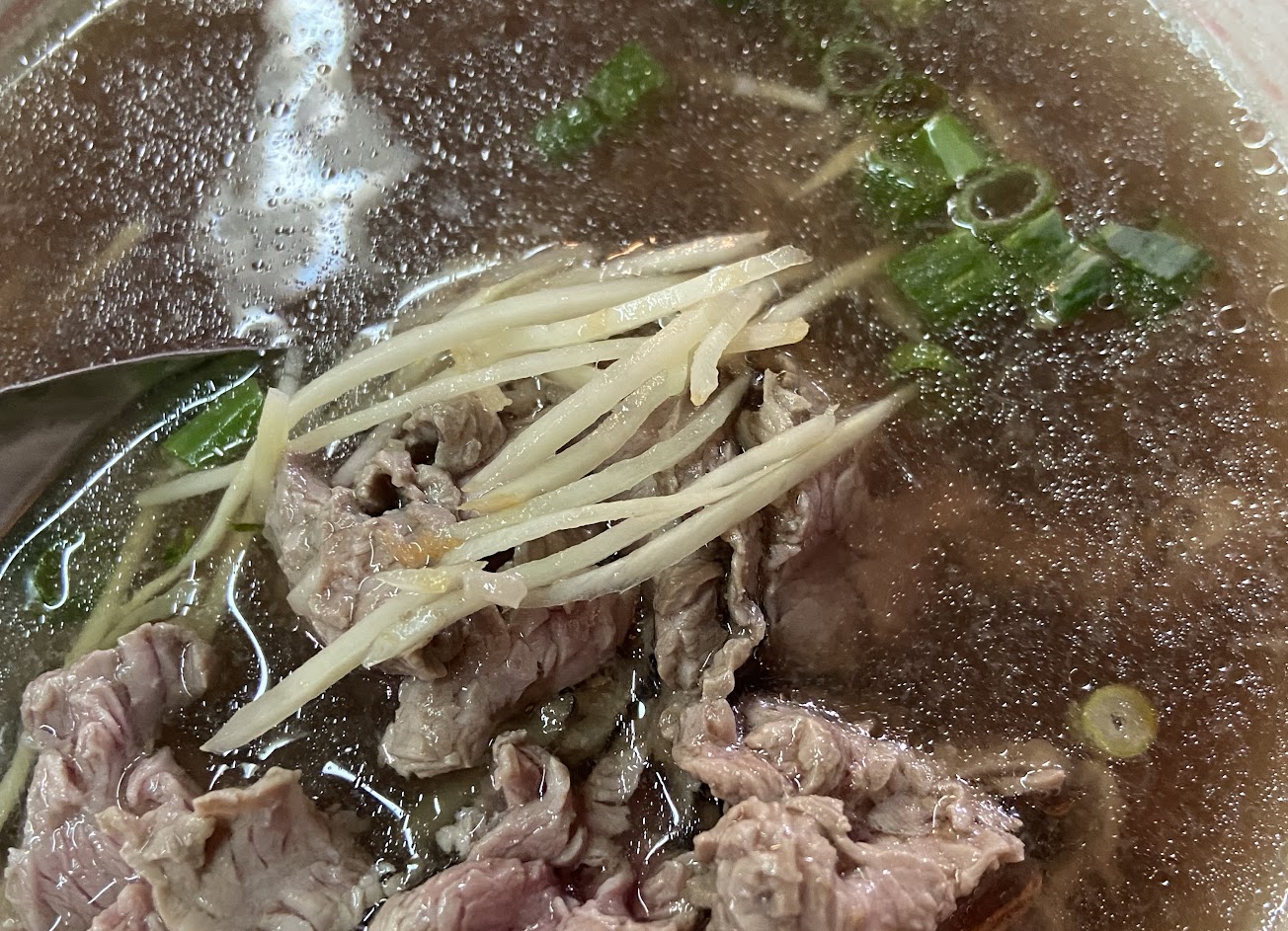 清牛肉湯湯頭十分鮮甜?真的好好喝! 肉片也是有一定厚度但不乾柴很嫩口~ 搭上薑絲醬料,吃到肚子腫起來也沒關係惹?