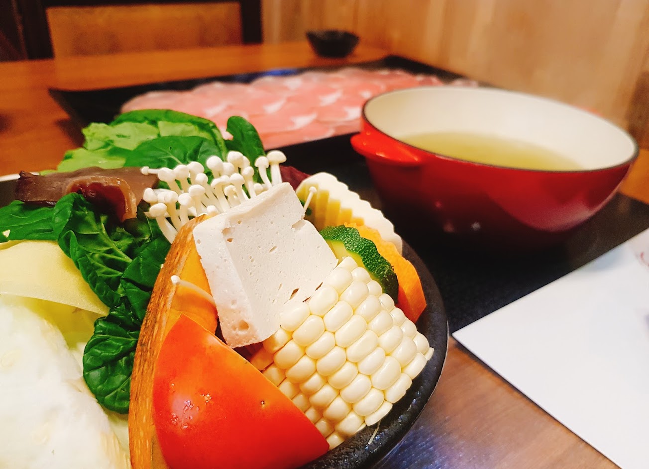 肉品部分點了兩款基本豬肉。不知道是切的方向紋理不對?還是肉品本身問題?有點韌性,不是很好咀嚼。