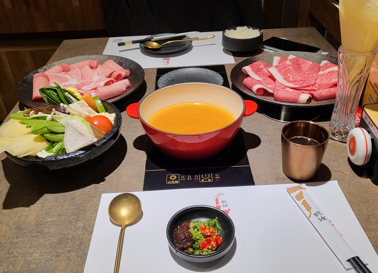 湯頭很好、肉品選擇超多又好吃、菜盤新鮮,其他的飲料、沾醬、冰品也都很讚,整體空間寬敞,店員都超親切,對小小孩也都很友善,加上一樓有超多美美的鹿角蕨,根本視覺與味覺的饗宴~? …