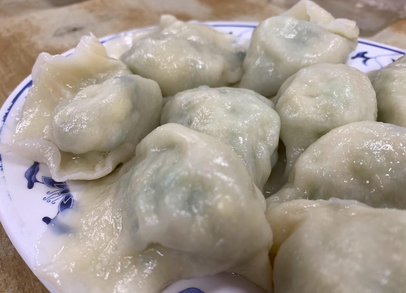 現杆現包現煮,難得有韭菜純素的水餃,而且沒有糊糊黏黏的(冷凍水餃),滿足了兒子兒時北京純素水餃的記憶。