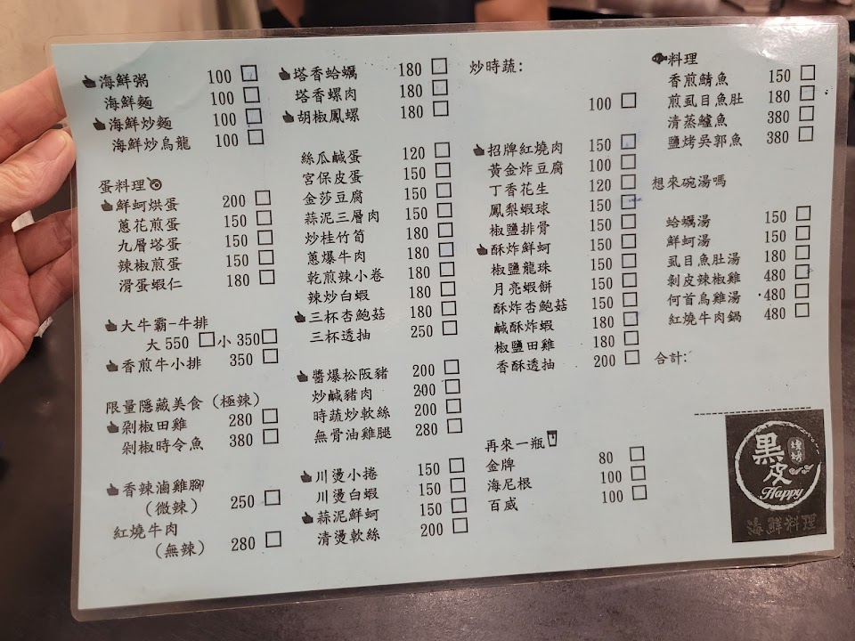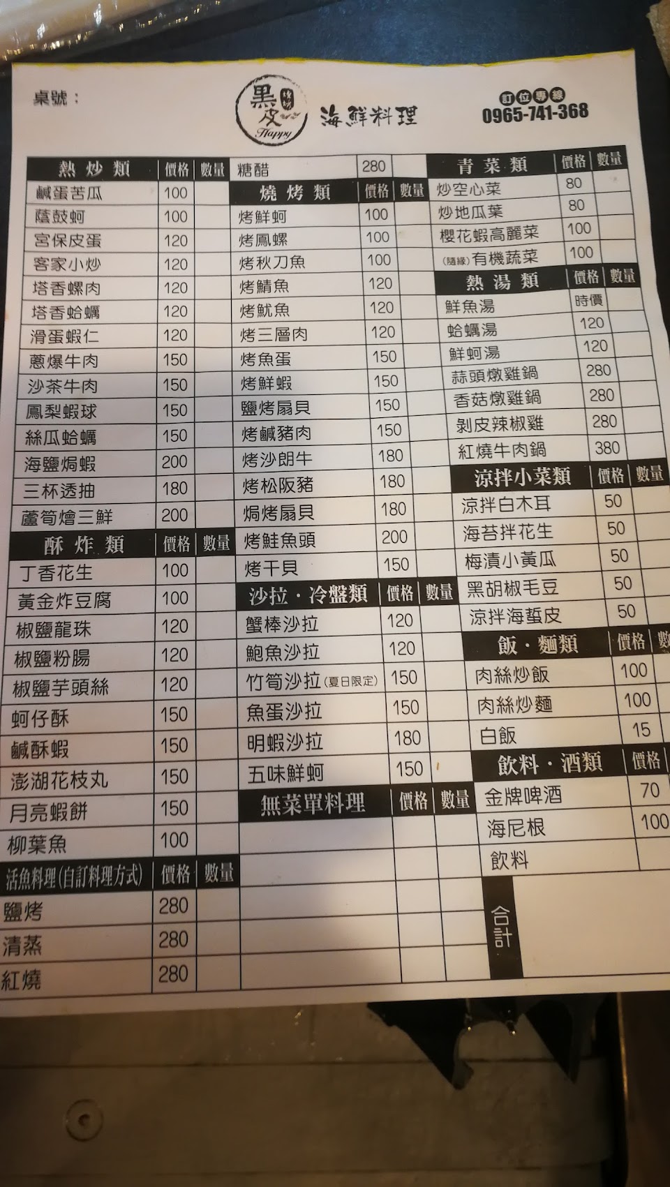 2024最新在地推薦餐廳的菜單_黑皮happy燒烤海鮮料理的菜單、圖片