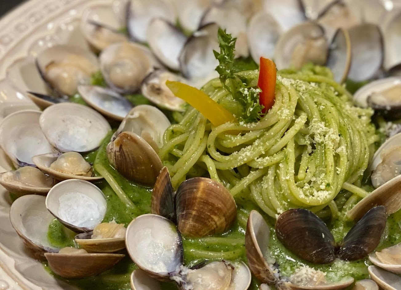 ?瘋狂青醬蛤蠣義大利麵的蛤蠣真的給的超多 ! 蛤蠣超鮮甜!青醬加了松子多了堅果香,濃郁卻不膩口很可以!