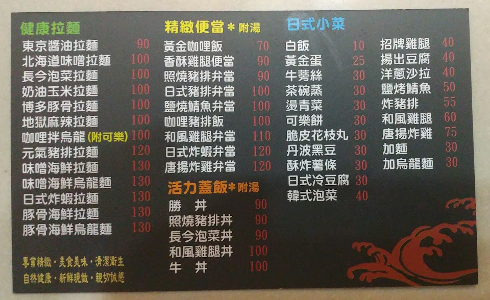 拉麵的湯跟水一樣 飯硬的跟石頭一樣 附的味增湯比我的飲料還要病 咖哩飯一塊肉都沒有