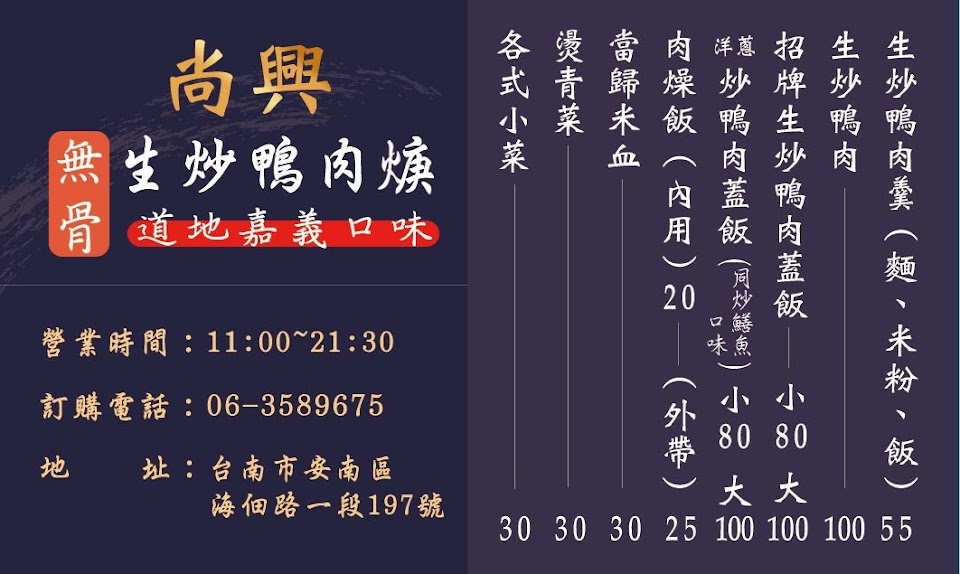 2024最新在地推薦餐廳的菜單_尚興無骨生炒鴨肉羹的菜單、圖片