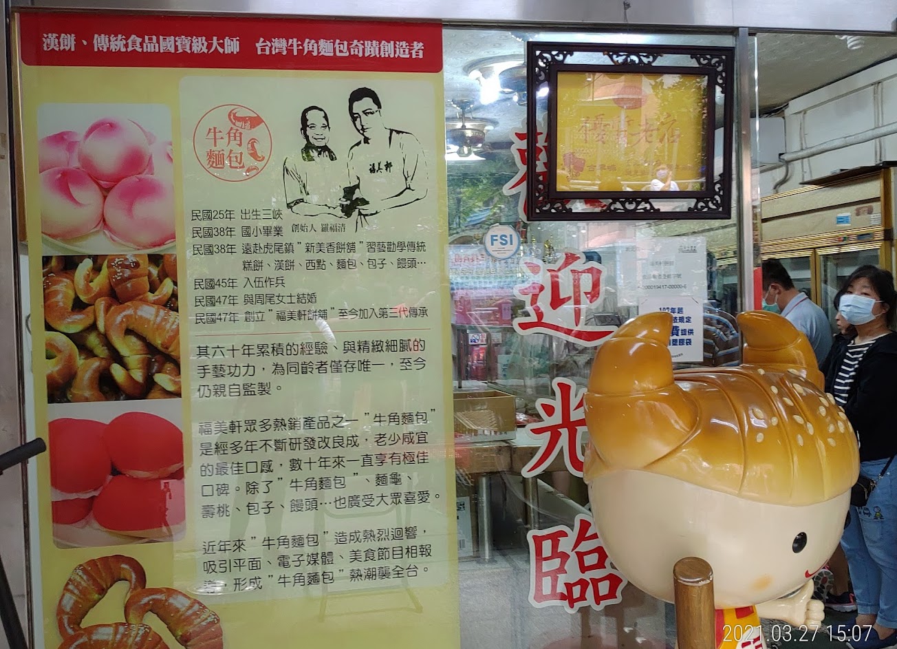 據說是三峽牛角創始店,無分店僅此一間,排隊夯店,每批出爐大約20~30分,不耐久候者…不建議前往。隱身在市場旁,比較過其他家,福美軒的口感較紮實,香氣較重,牛角尾端像餅乾。註:每人限購50支