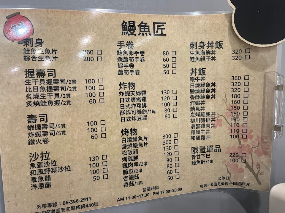 推薦白燒鰻魚飯,微微的碳香搭配醬汁飯與Q彈的鰻魚飯真是一絕,在安南區也有好的鰻魚飯餐廳真是太棒了!