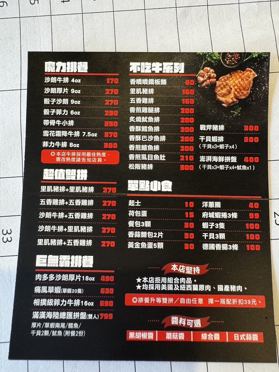 2024最新在地推薦餐廳的菜單_魔力牛牛排館 台南安中店的菜單、圖片