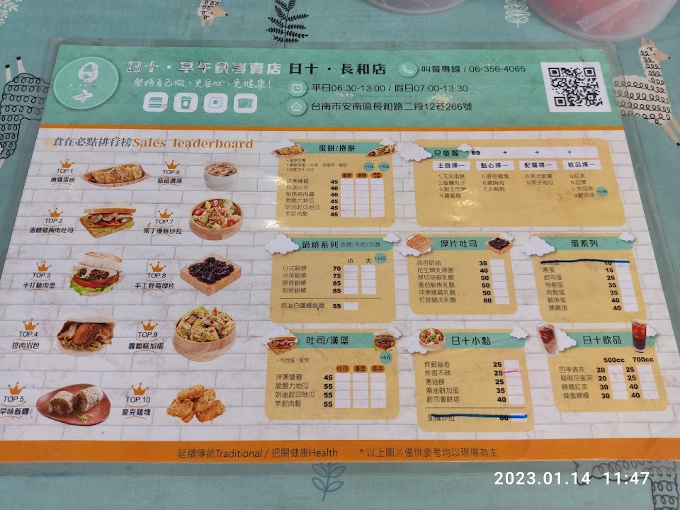 2024最新在地推薦餐廳的菜單_日十長和店早午餐(安南醫院附近)的菜單、圖片