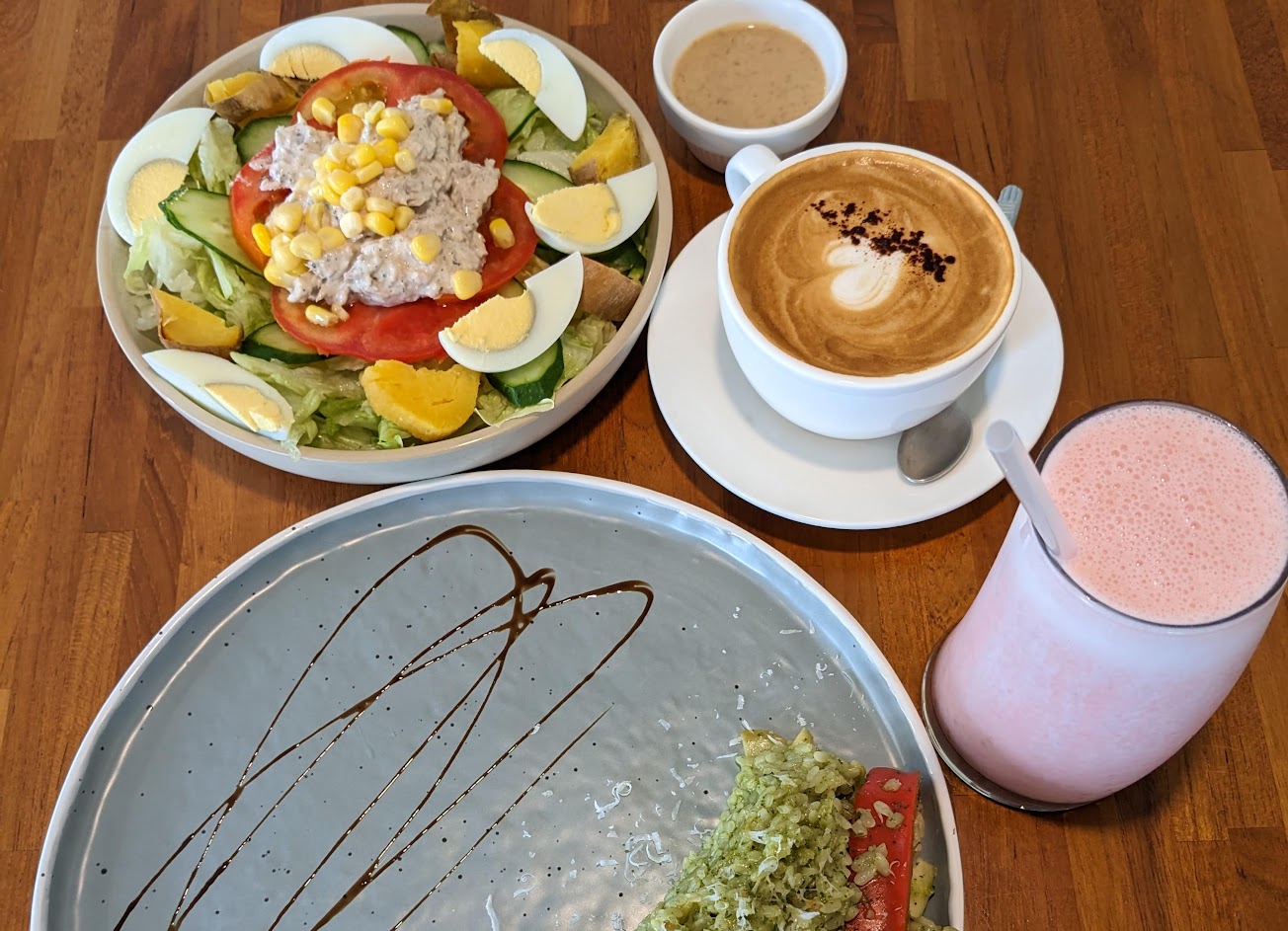 餐點好吃,但單點份量稍微少了些,要再加點成套餐比較能吃飽,卡布奇諾和草莓優格都很好喝