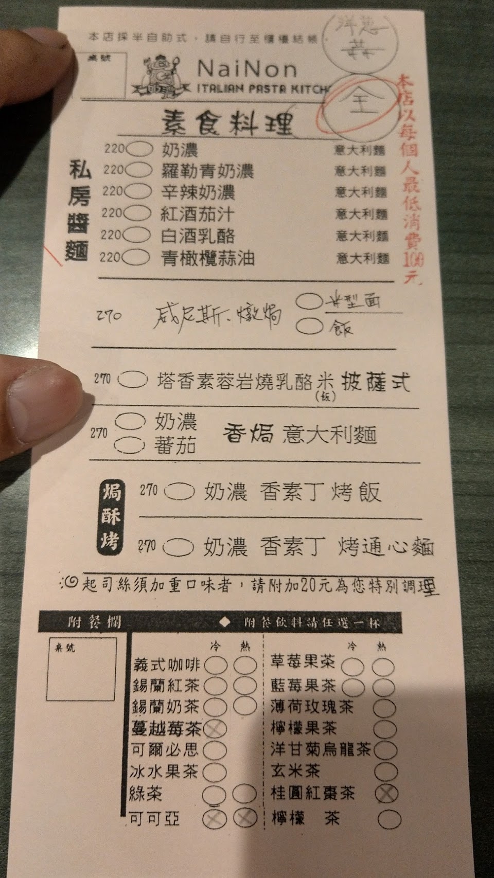 今天點了不辣蒜香培義大利麵?
