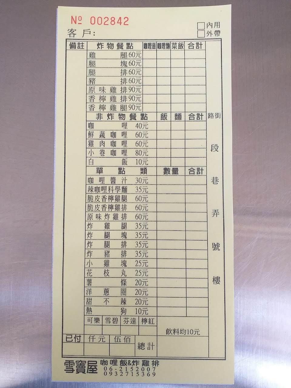 2024最新在地推薦餐廳的菜單_雪竇屋咖哩飯的菜單、圖片