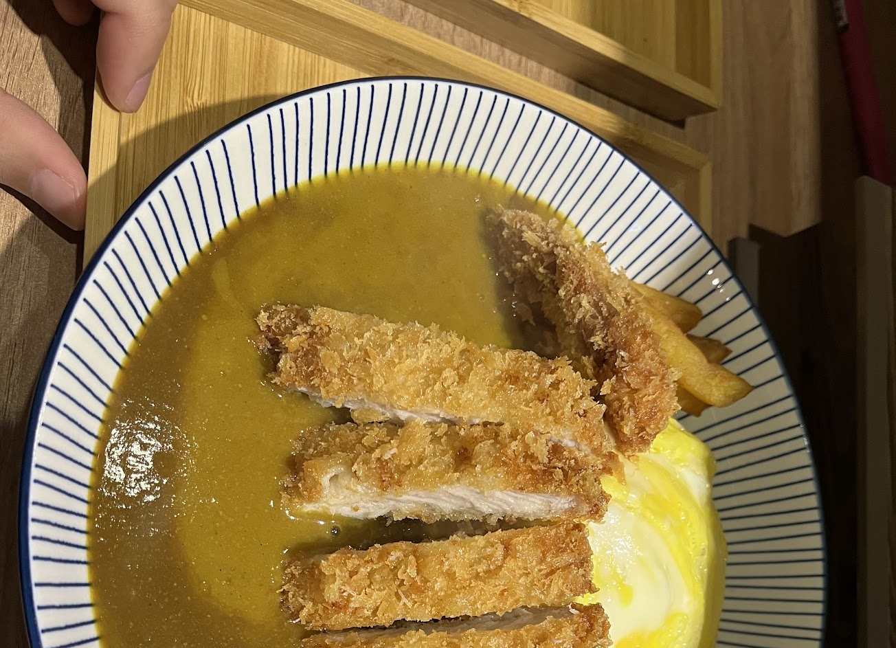 咖喱濃郁,炸雞很多汁,可以點個半熟蛋增加口感,如果覺得吃不夠還可以免費加一碗飯,好吃大滿足!