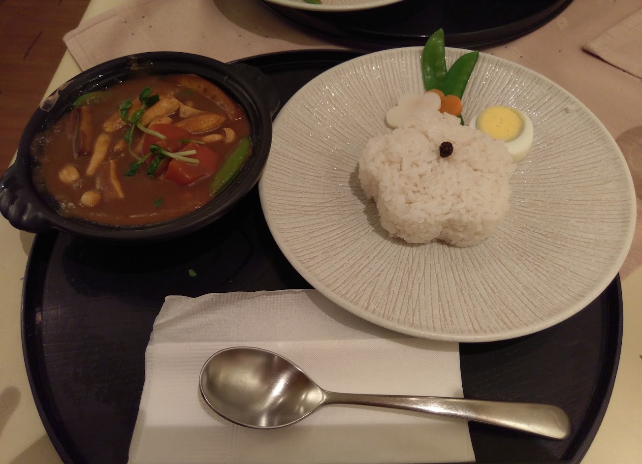 本以為只是ㄧ間普通的咖哩飯店,沒想到ㄧ進去每桌都擺著玫瑰花心想著也太浪漫的咖哩燭光晚餐了吧!