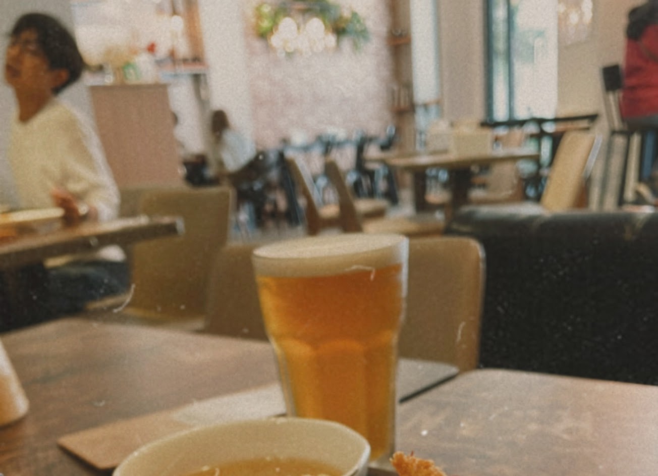 咖喱濃郁順口還有肉末、炸蝦酥脆而且有三隻,附的蔬菜湯很好喝,而且咖喱醬、飯跟湯都可以續,真的CP值很高,加價的鮮奶茶是大杯的,味道也不錯?推,跟同行朋友都很喜歡❤️