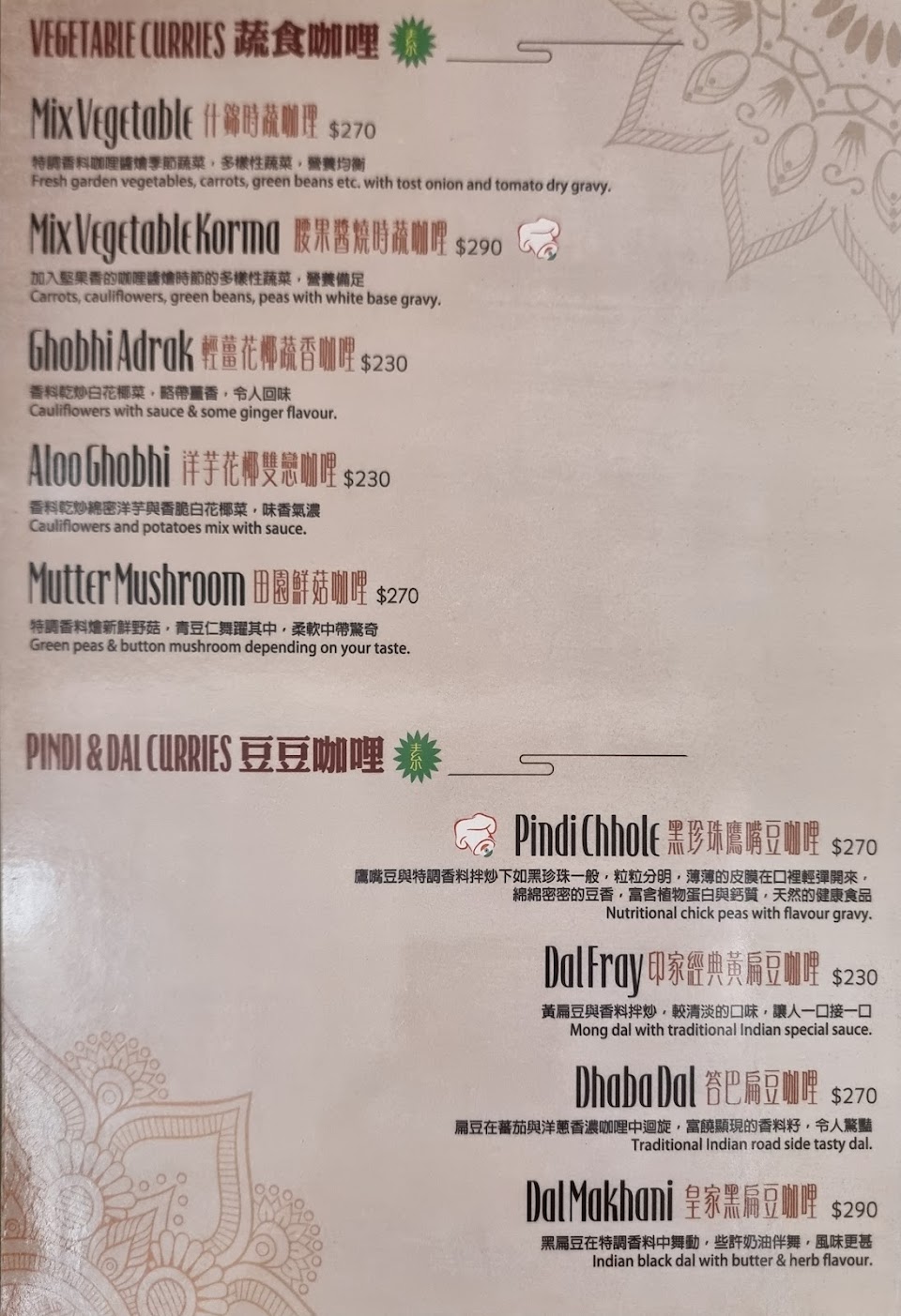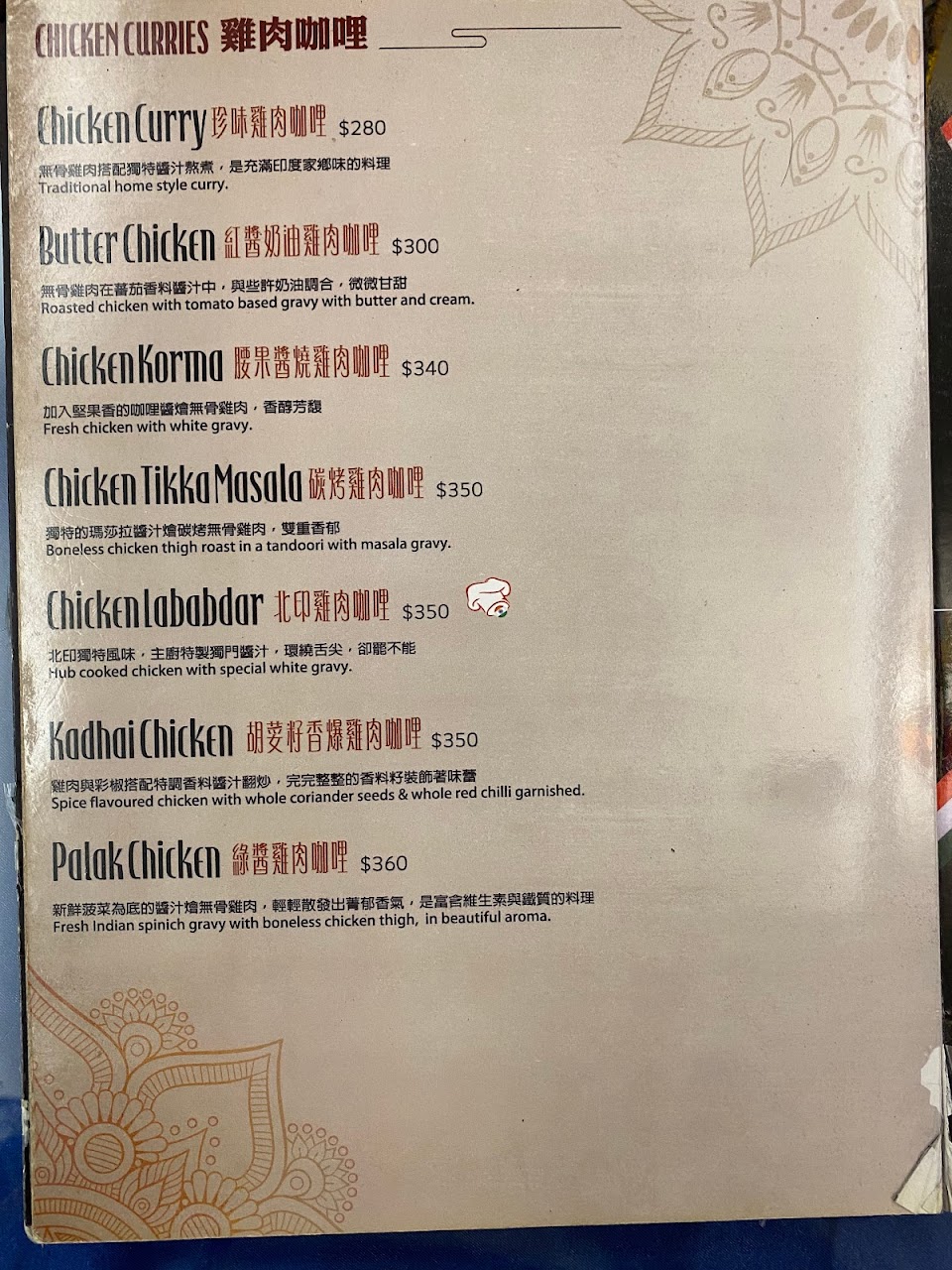 2024最新在地推薦餐廳的菜單_主廚帽印度餐廳的菜單、圖片