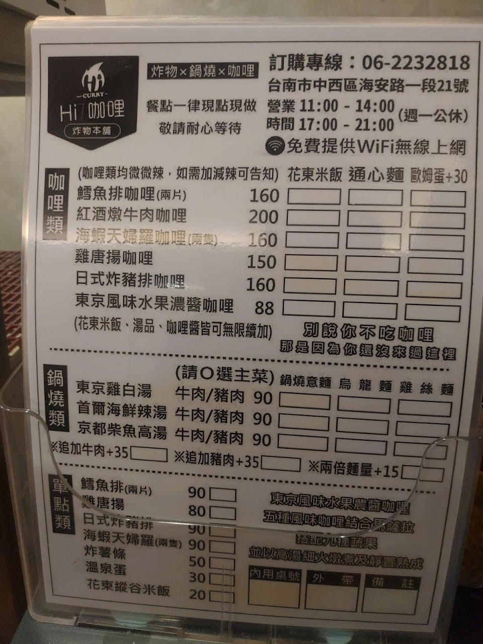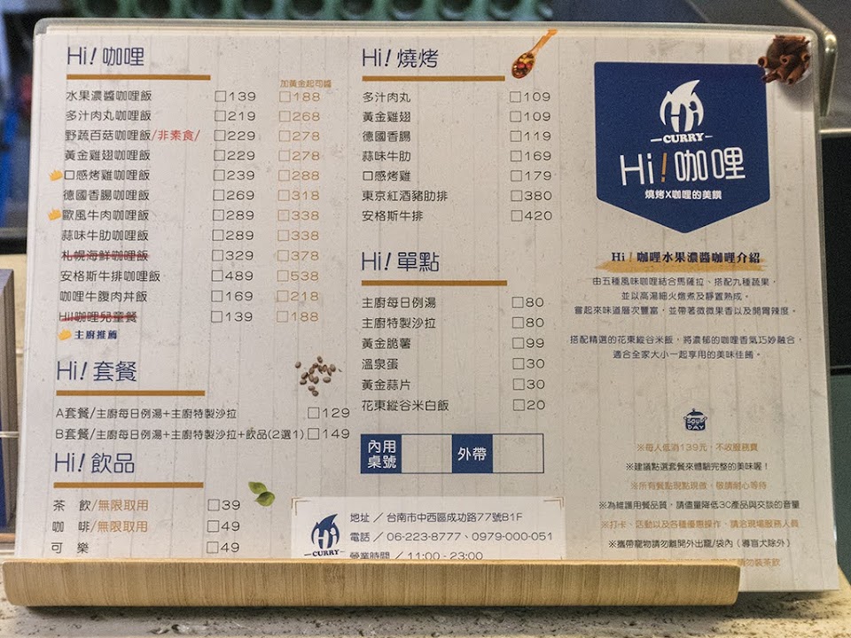 2024最新在地推薦餐廳的菜單_Hi!咖哩的菜單、圖片