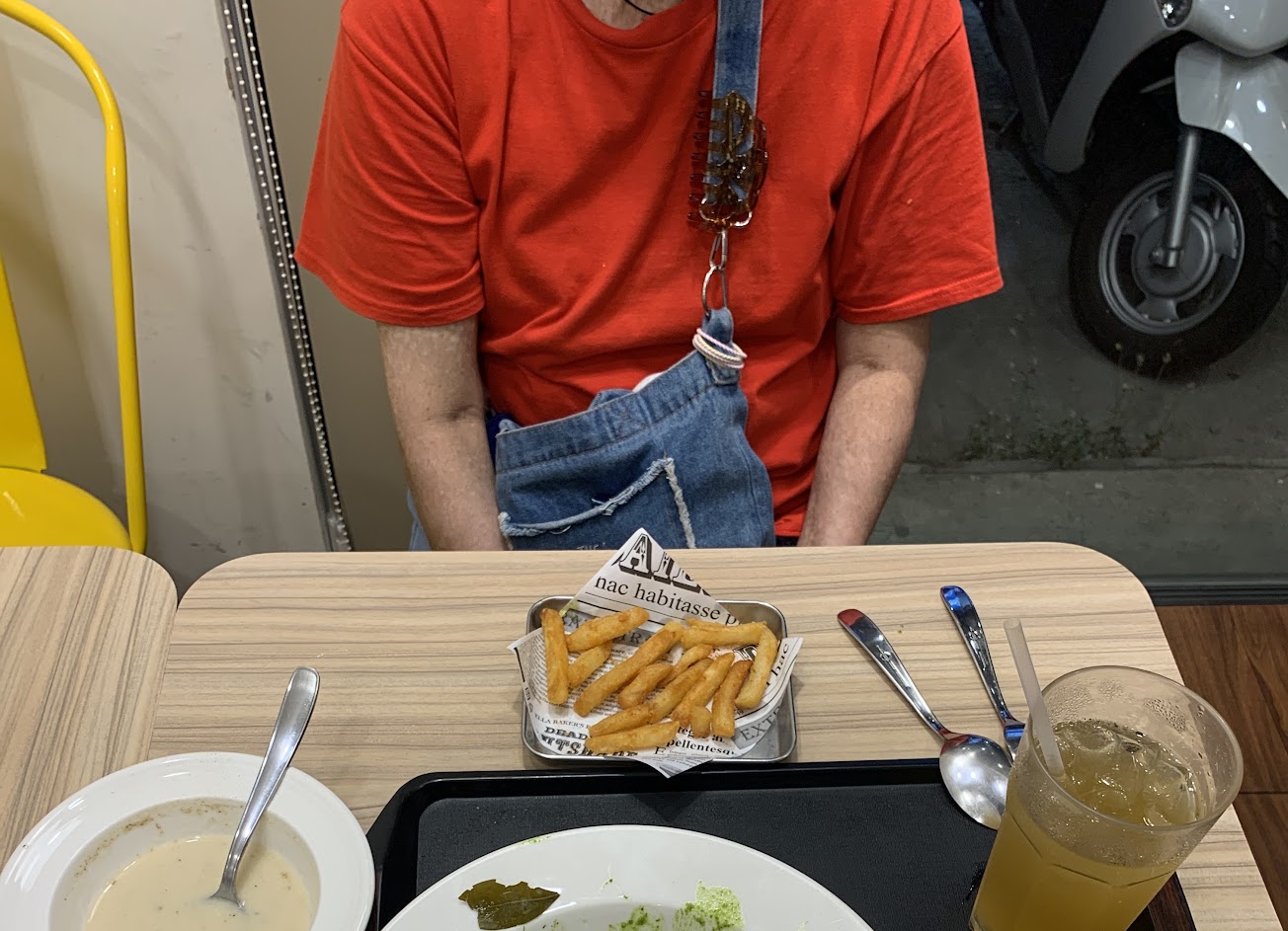 1.進門左手邊取菜單 2.自由找座位,點餐後付款 3.以義大利麵、燉飯為主 3.醬料視餐點不同有六種可搭配 4.套餐有四種 5.提供飲料、炸物 6.餐具自行取用,完食後自行放餐盤 7.一、二樓為內用,但二樓採光普通,偏暗 8.有空調、但沒作用 9.環境拜訪太多雜物、觀感較不好,建議改善 10.味道是好的,這部分值得推薦! 服務 內用 餐點類型 早午餐 平均每人消費金額 $200-400 餐點:4 服務:3 氣氛:3