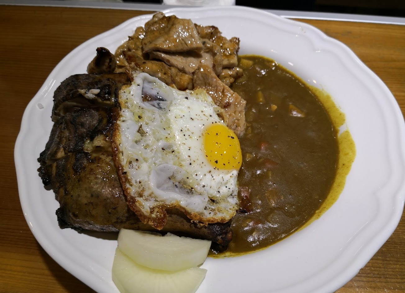 肉控咖哩,燒肉很香很好吃,但咖哩與雞腿個人覺得普通而已,飯量與咖哩醬料感覺不夠。
