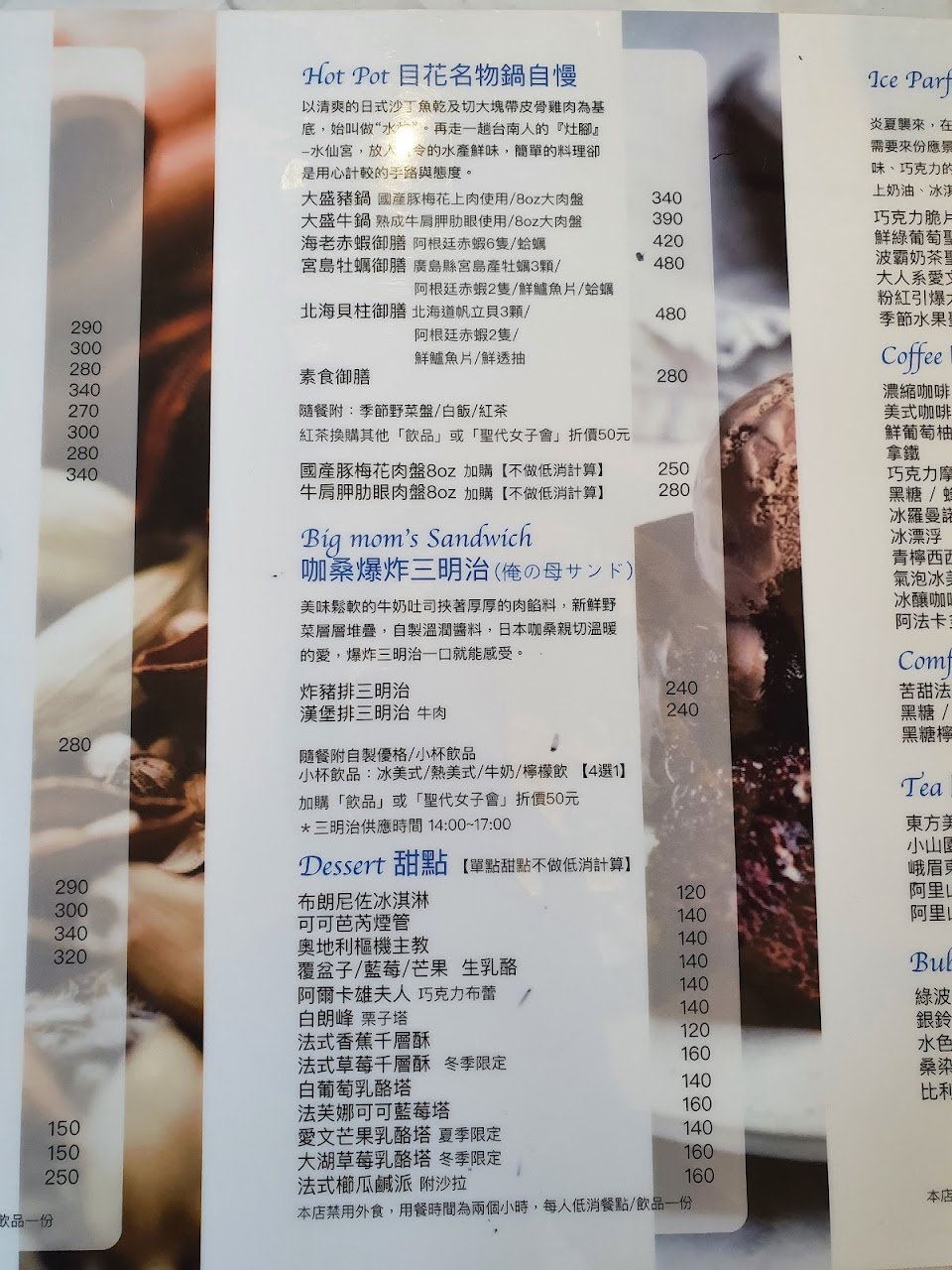 天使紅蝦火鍋, 天婦羅-咖哩口味, 杏仁巧克力藍莓塔, 苦甜法芙娜可可, 軟殼蟹咖哩飯, 黑洞の唐揚雞黑咖哩 咖啡 甜點