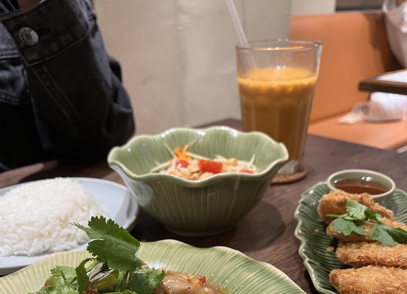 外觀看起來很不起眼的一間餐廳,走進去後覺得有氛圍感,餐點出來,打拋豬(剛吃感覺不怎麼辣後勁越吃越強),炸松阪豬(好吃但是特色還好),涼拌海鮮(酸辣調配的很好爽口),泰式奶茶(這是喝過有此以來不會反感口味),價位上還能接受,總結論:這間店我很推薦。我還會再來。感覺綠咖哩套餐應該還蠻不錯蠻多人點的 服務 內用 餐點類型 晚餐 平均每人消費金額 $200-400 餐點:5 服務:5 氣氛:5 建議的餐點