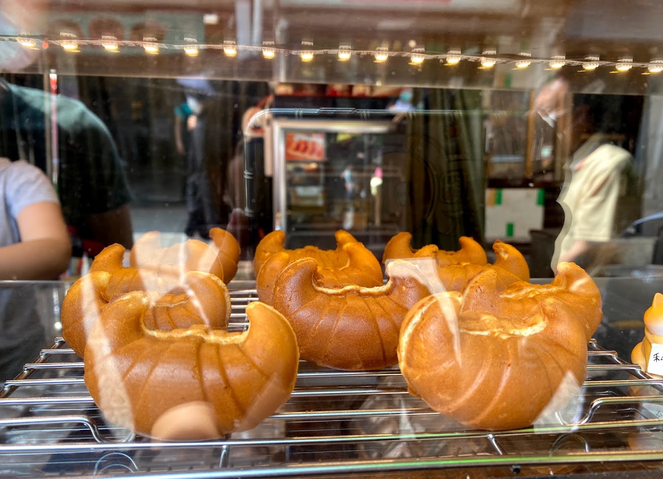 雞蛋糕也有金牛角造形有包餡好吃,其他地方不曾看到就是特色也是此地限定,美女老闆笑臉迎人又是另一特色,位於紅磚造老街盡頭右轉”祖師廟”方向左邊巷口