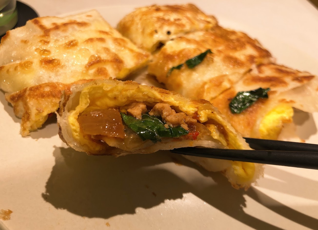 蛋餅口味多樣,食材新鮮美味,吃了還想再外帶。泰式打拋微辣一口接一口;瑪格麗特夾有蕃茄醬料微酸爽口;炸饅頭必點必吃!