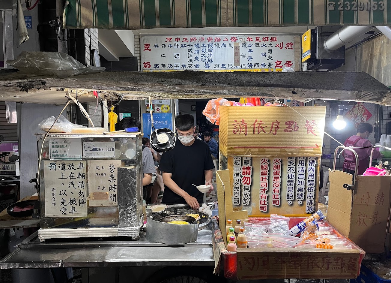 這是一家老店了 從民生路班來府前路也很久了對台南人來說就是一個宵夜攤 米漿杏仁茶很好喝豆漿就一般般而已