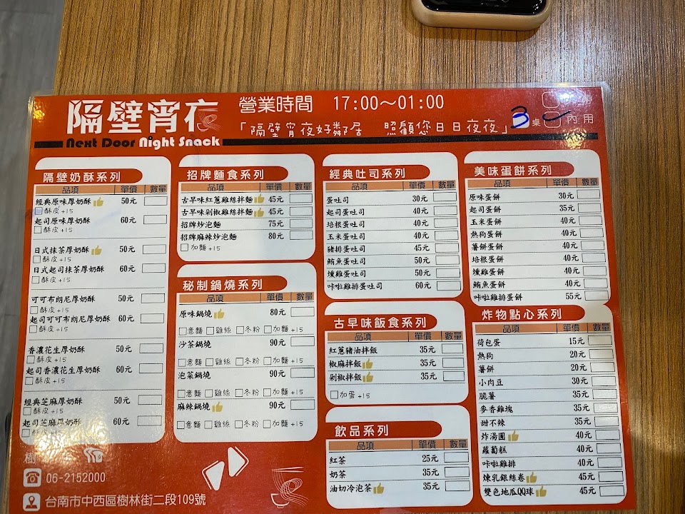 2024最新在地推薦餐廳的菜單_隔壁宵夜-樹林店的菜單、圖片