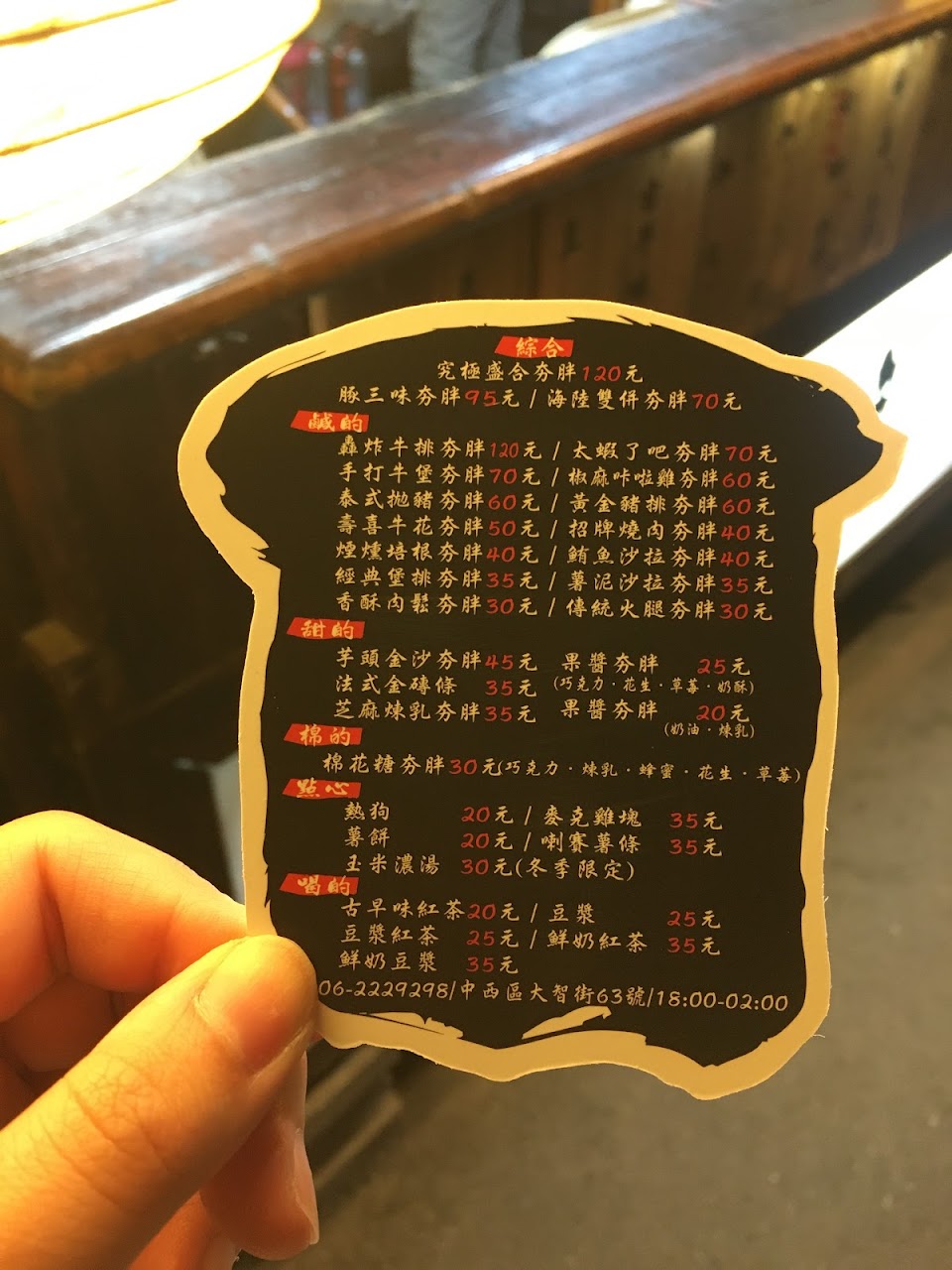 老公想吃他們的壽喜燒牛吐司和紅茶,老婆只好去買,服務人員很親切,紅茶好喝