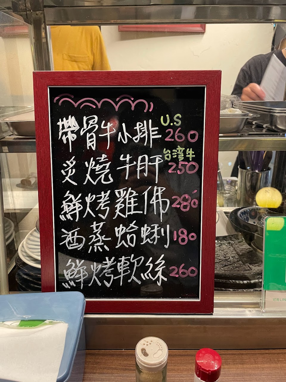 另外想吃的酒蒸蛤蜊、軟絲、秋刀魚 都沒有… 不知道為什麼要寫在小黑板上? 而且點完菜在等出餐的過程也被陸續告知幾項菜沒了,明明才剛開店有點不能理解…. (我可是8點前就在攤前等老闆準備好,去隔壁上個廁所才回來點餐的)