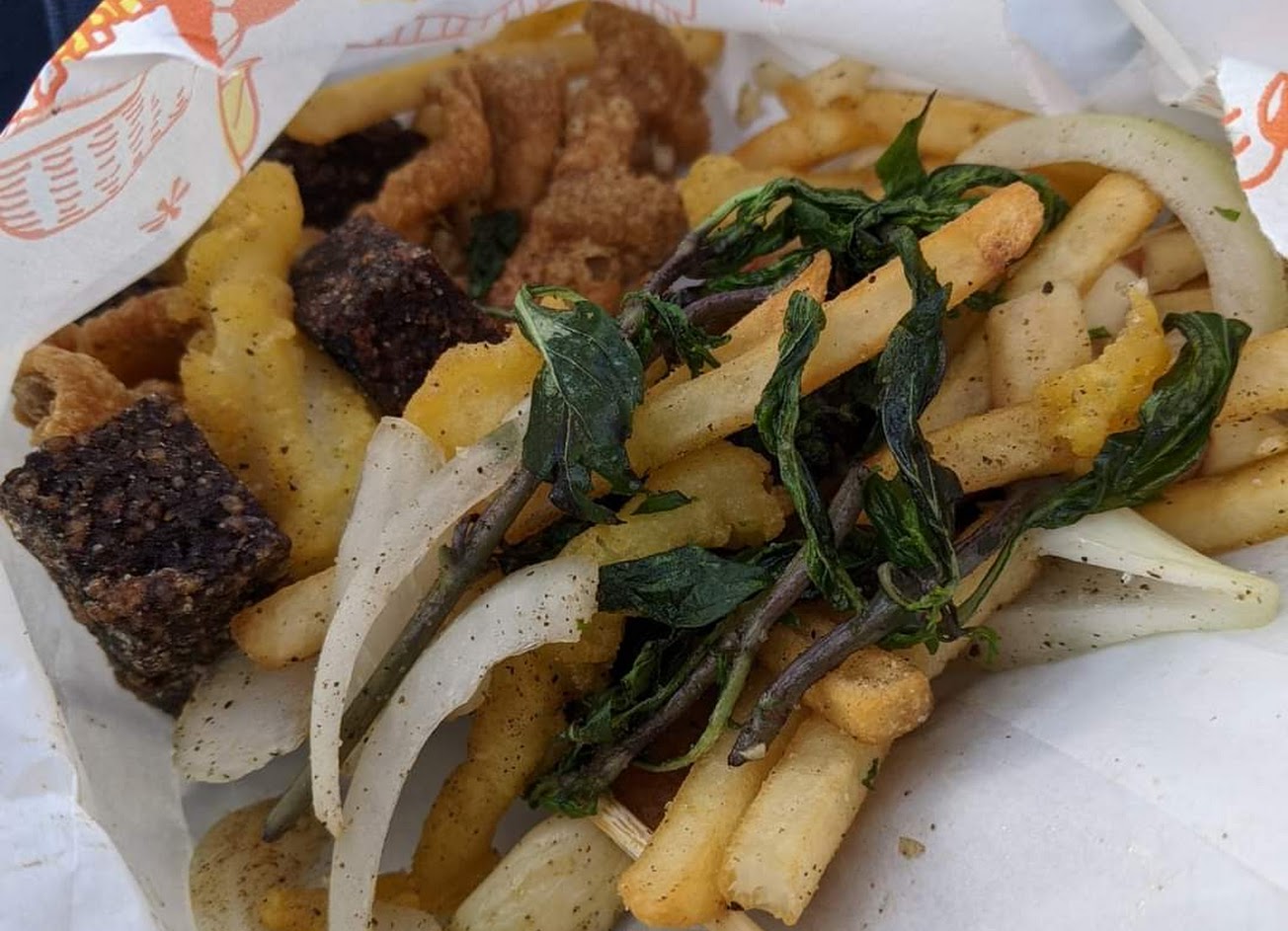 點了雞排、薯條、甜不辣、糯米腸真的便宜又大碗又好吃,20元的份量真的多、雞排也很大塊,超推👍