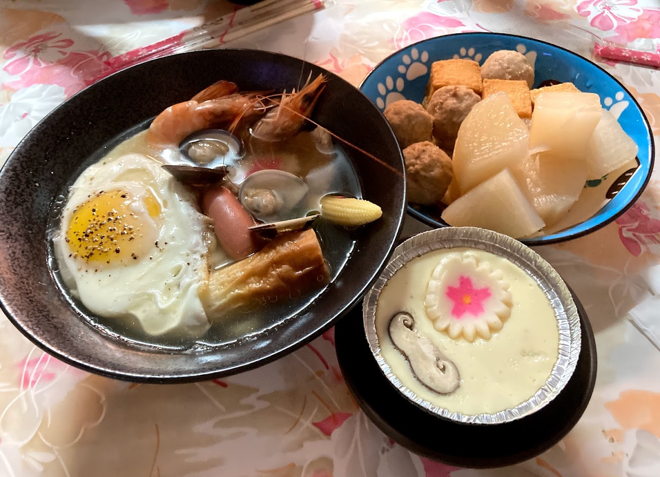 結果點餐時店員說要幫我們合併打成一張單就好,兩張菜單點的關東煮也要幫我們合併成一盤,請問分兩桌要怎麼共吃一盤關東煮?