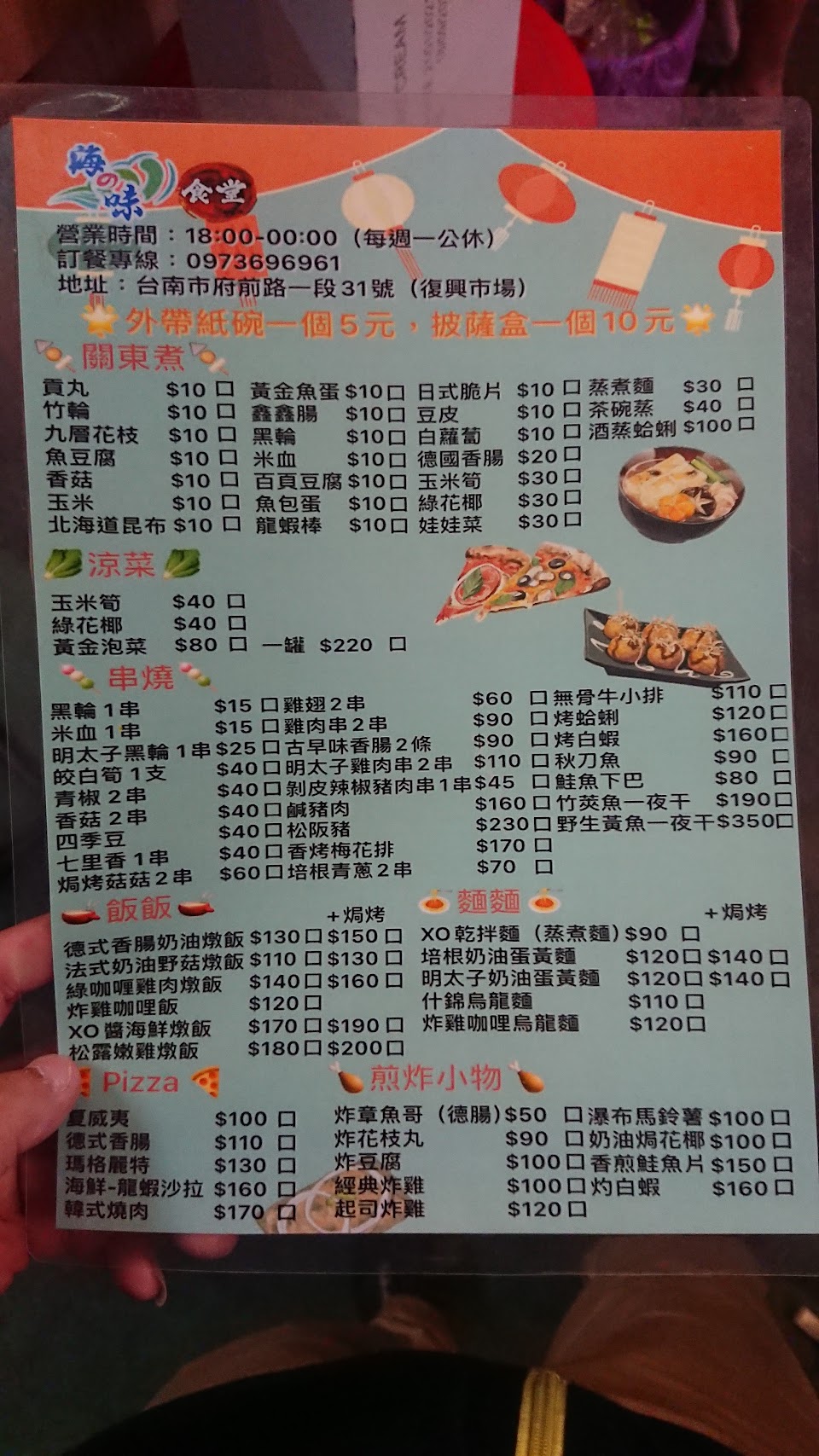 夜宵燒烤聚會營業到凌晨1點 服務 內用 餐點類型 晚餐 平均每人消費金額 $1-200 餐點:4 服務:4 氣氛:5 建議的餐點 瀑布馬鈴薯, 日式炸豆腐, 關東煮, 炸雞咖哩飯, 關東煮湯