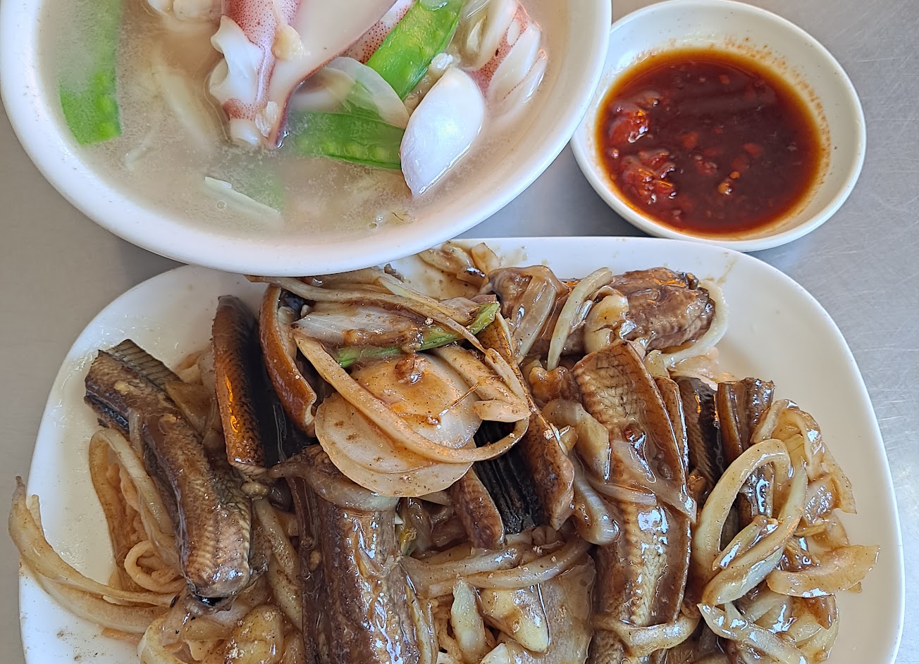 我選乾炒鱔魚麵 加大量的洋蔥下去炒 超鮮甜好吃 魚肉口感Q脆好吃 雖然麵體有點看不懂 有點像泡麵卻又不是 沒這麼硬但不會爛