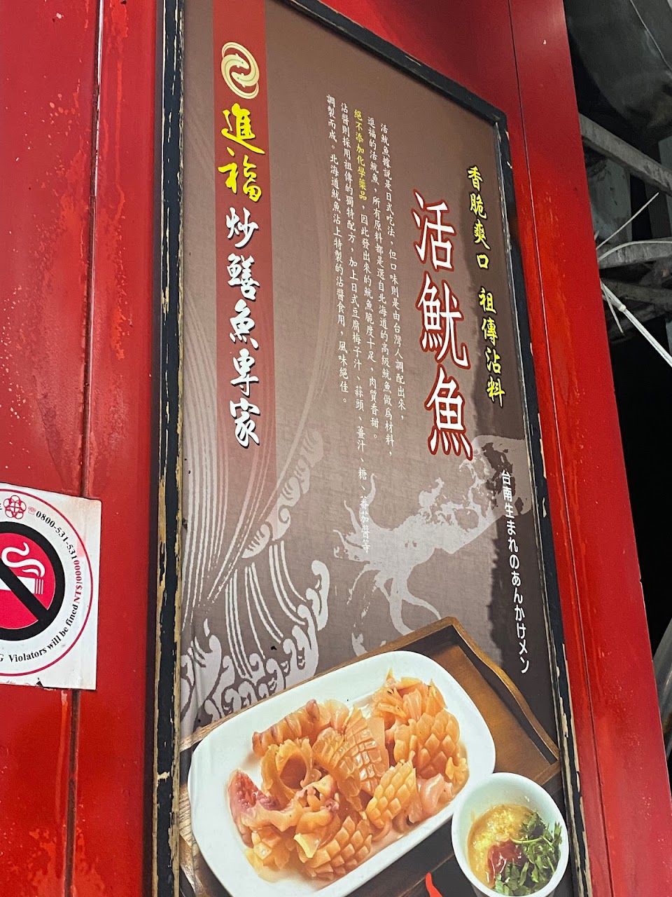 假日生意很好,若要內用可能會排隊一段時間,乾炒鱔魚意麵的份量滿大的,微甜微鹹的醬汁跟魚肉的搭配剛剛好。燙魷魚也不錯吃