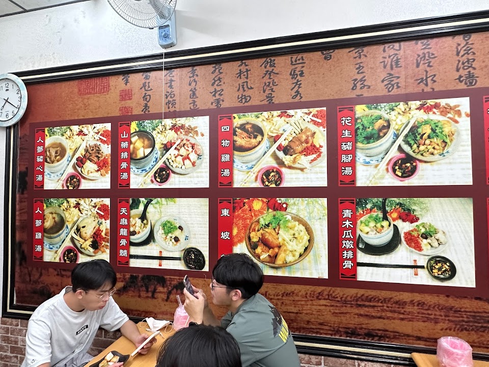 東坡飯好吃,可惜是有些太肥,沒有什麼配菜,沒有便當的選項,四物湯、龍X湯比較好喝,排骨湯還可以,燉湯有用瓷器很讚! 希望改進的是,能改換掉那個遇熱會產生毒素的美耐皿餐盤,感恩。